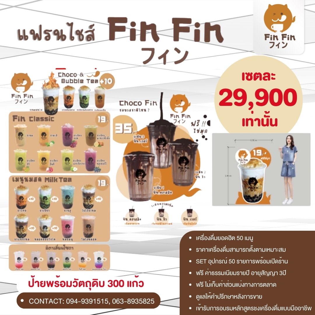 ยุคนี้ใครๆ ก็อยากมีธุรกิจเป็นของตัวเอง แต่การเริ่มต้นจากศูนย์มันยากใช่มั้ยล่ะ? แฟรนไชส์ Fin Fin Cafe’ ฟินฟิน คาเฟ่ เข้าใจถึงความต้องการของคนรุ่นใหม่ จึงออกแบบแฟรนไชส์ที่ตอบโจทย์ทุกอย่างที่คุณมองหา